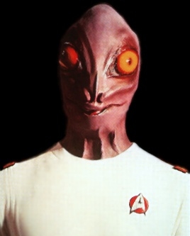 unbehaarter, homogener Schädel ohne Ohren; fliehende Stirn und flache Gesichtsregion;